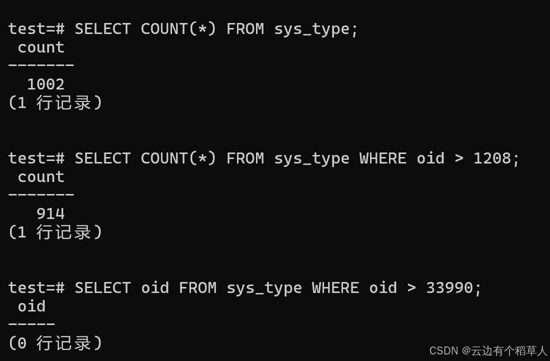 我们可以通过以下 SQL 验证系统表 OID 的全局特性: