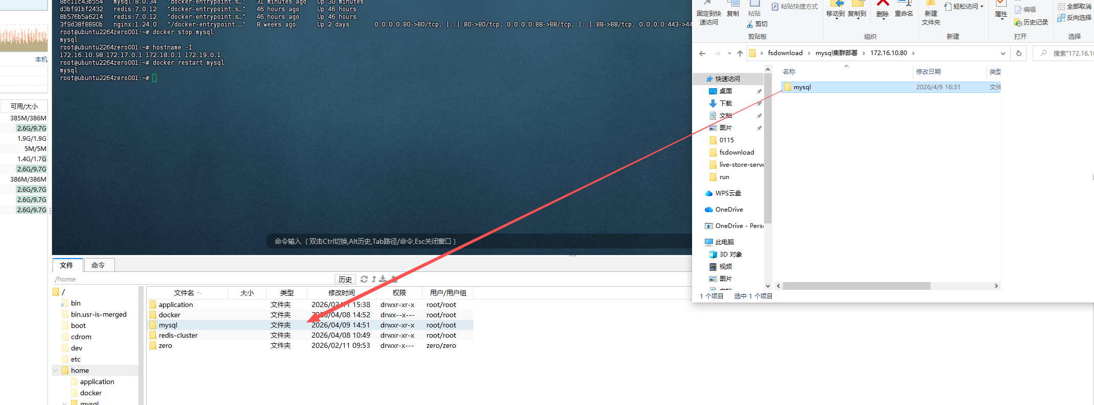 将 mysql集群部署\ip\mysql 文件夹上传到对应服务器 /home 文件夹下