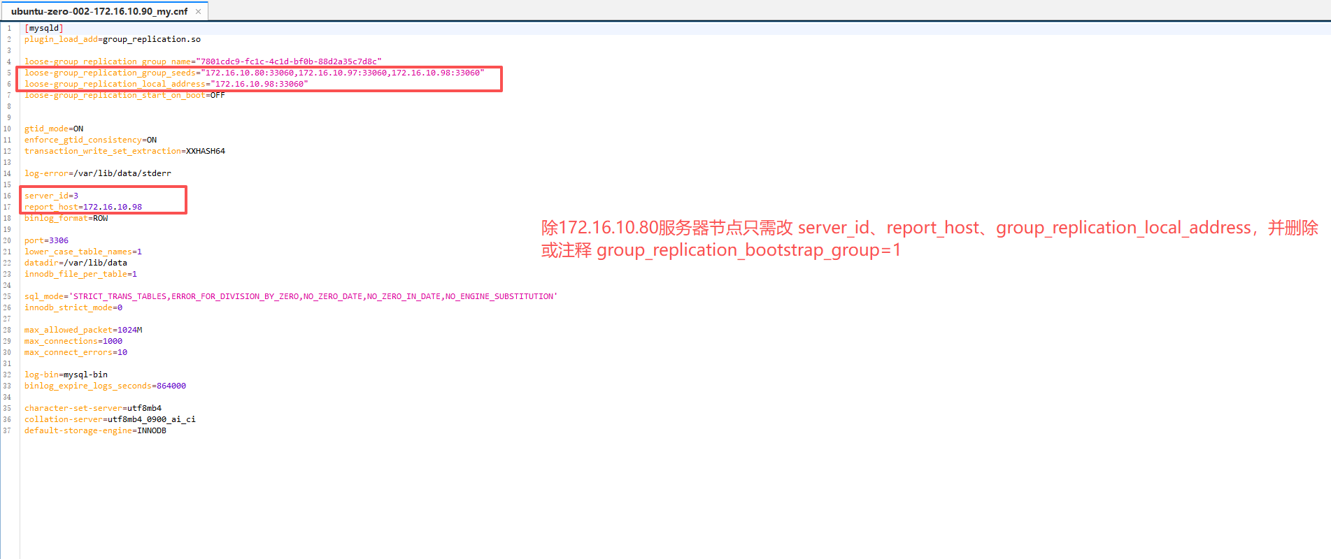 步骤二:修改 /home/mysql/conf/my.cnf 文件