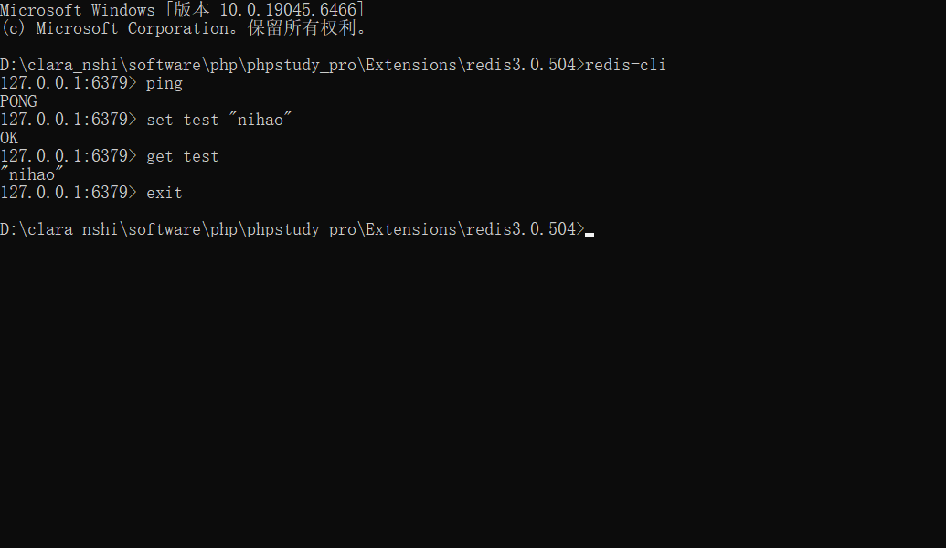 安装完成后,可以在命令提示窗,通过以下命令测试Redis是否正常工作