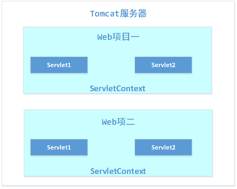 - WEB容器在启动时,它会为每个WEB应用程序都创建一个对应的ServletContext对象,它代表当前web应用。