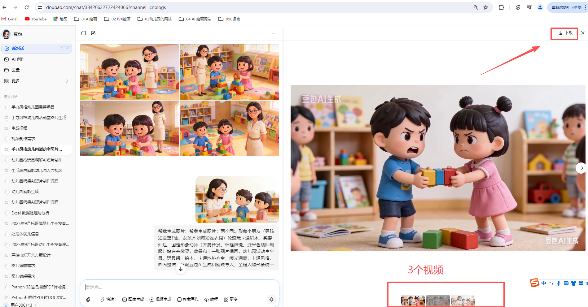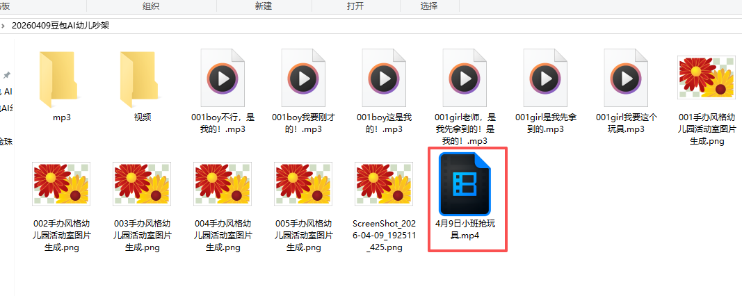 20260409日豆包AI视频《小班抢玩具》(豆包+通义万相