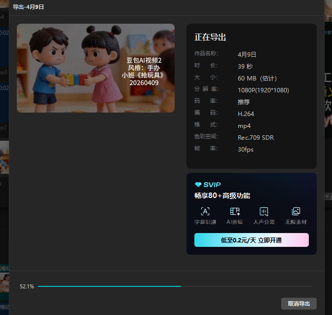 把豆包生成AI视频的音乐作为背景乐(最后发现不能用人声分里,要收费,但是分离音频是免费的)