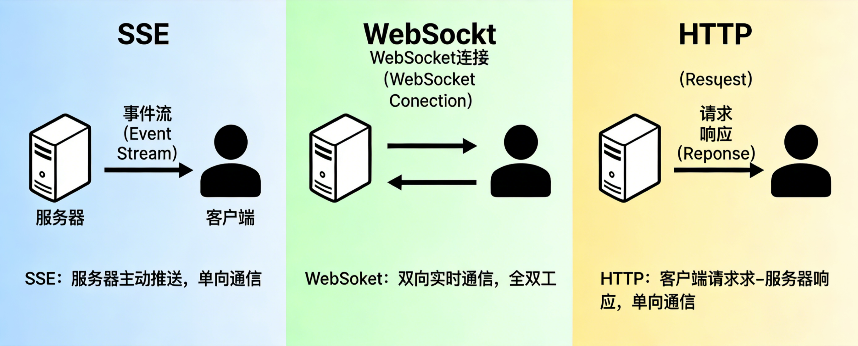 | 维度 | HTTP | SSE | WebSocket |