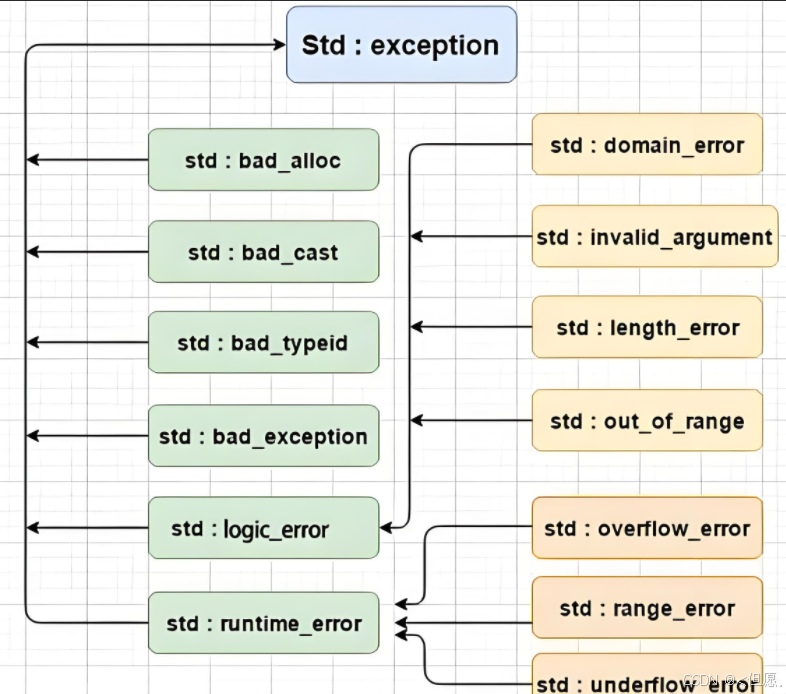 异常尽量规范使用,随意抛异常,外层捕获的用户苦不堪言。所以异常一般:一、抛出的异常类型都继承于异常的基类。而函数是否抛异常,抛什么异常,都使用throw()的方式规范。