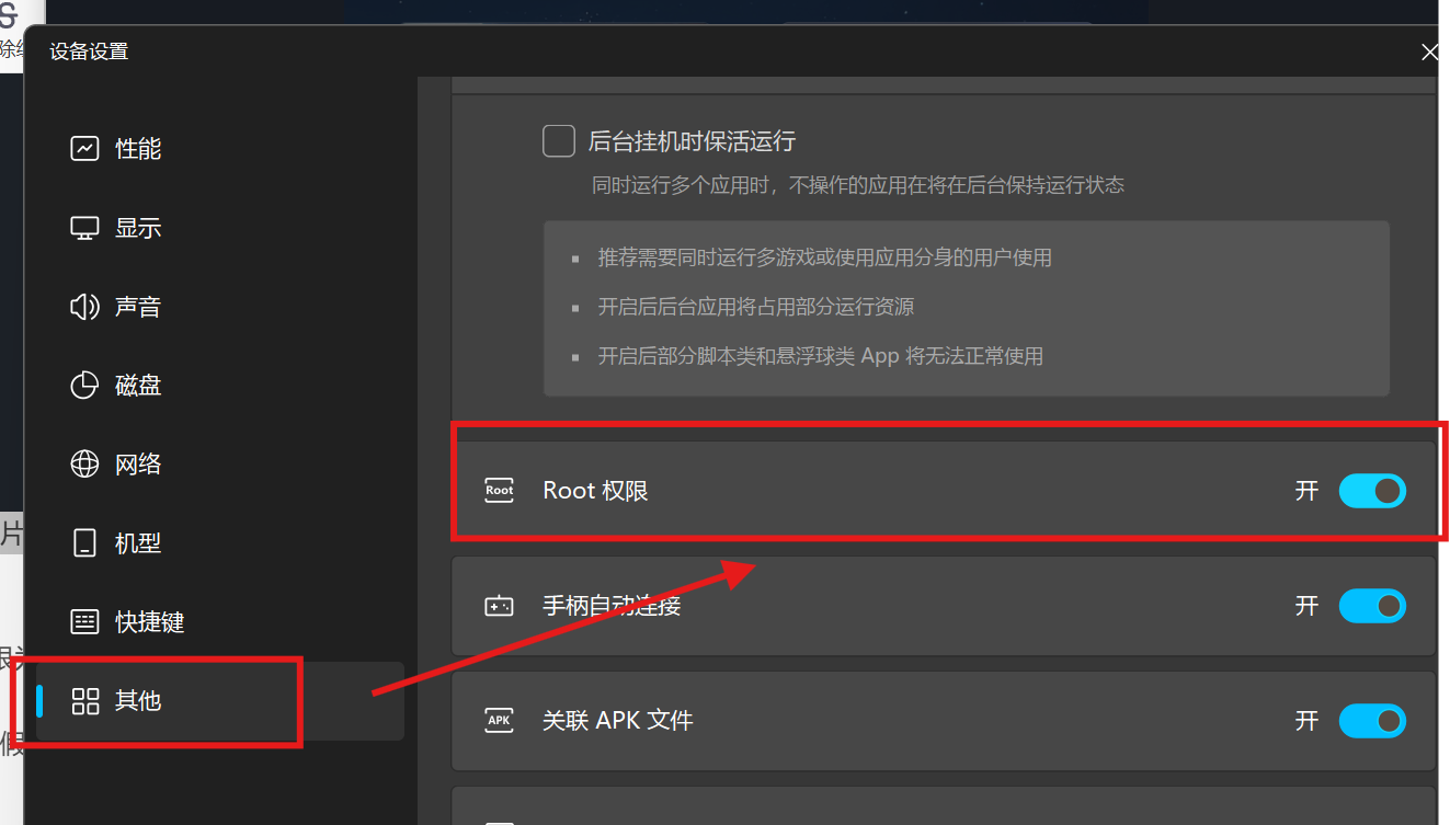 模拟器开启 root:在 MuMu 多开器/设置中开启 Root 权限。