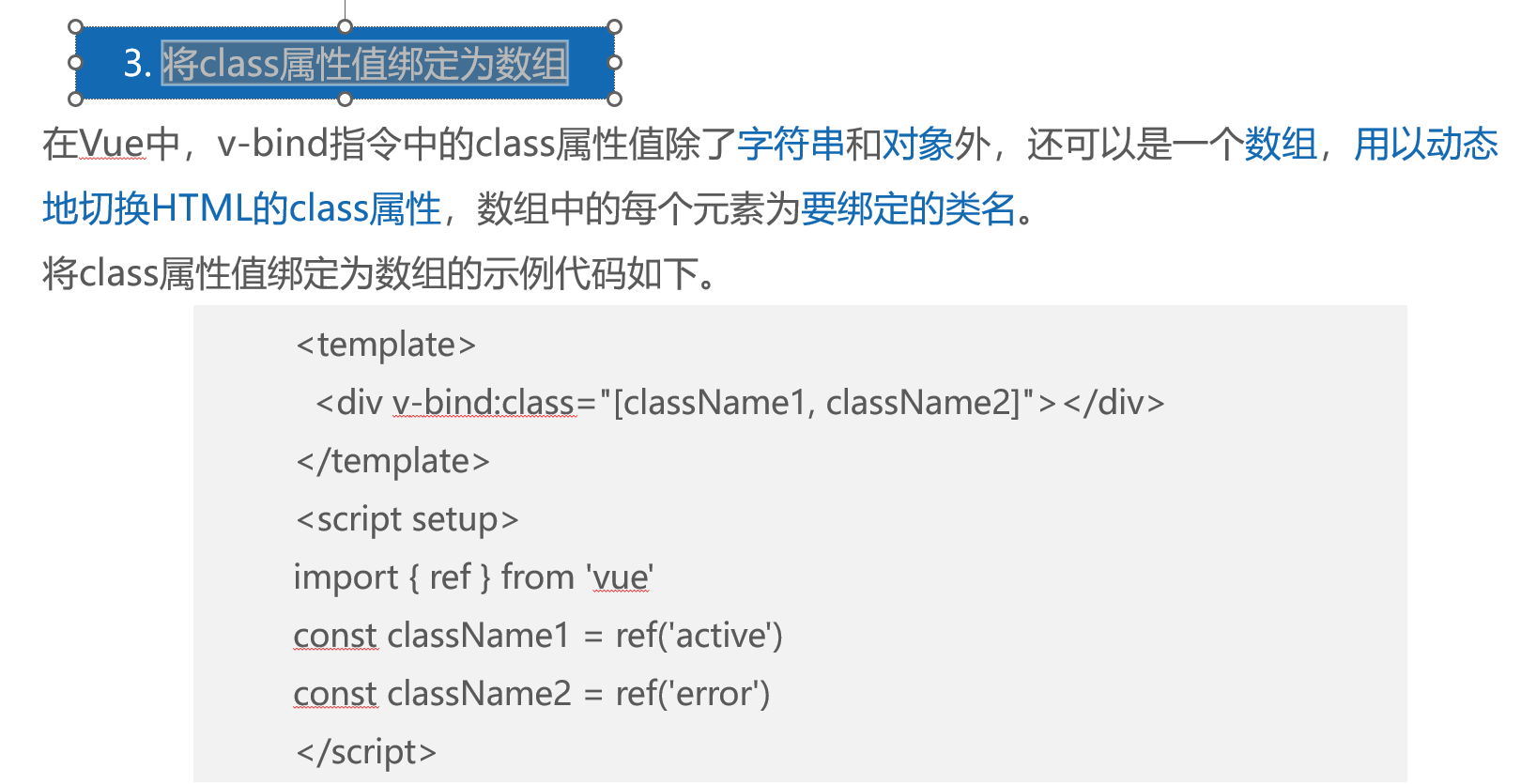 [2.3 将class属性值绑定为数组](#2.3 将class属性值绑定为数组)