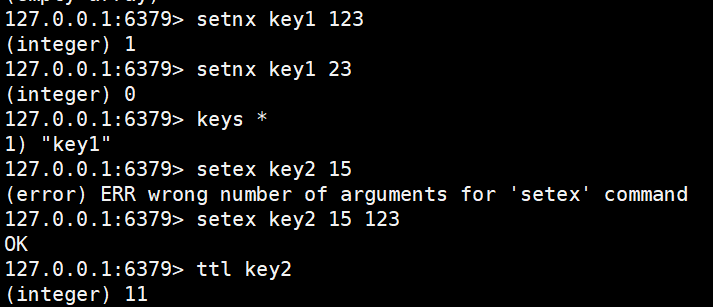 setex key2 15 123