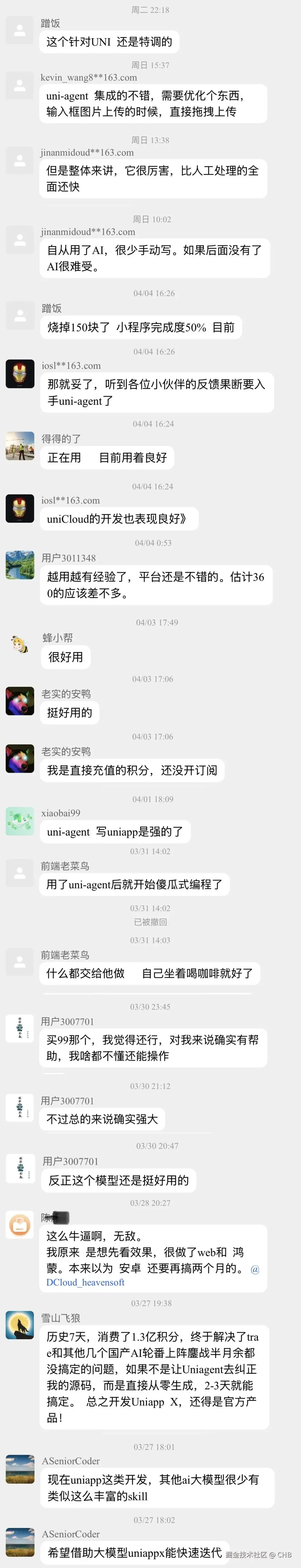 uni-agent 发布后,短期内已经有数千开发者付费使用,收获大量好评: