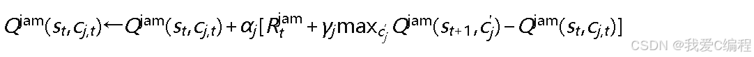干扰机Q学习:干扰机独立进行学习,维护Q表𝑄jam(𝑠,𝑐𝑗),更新规则为: