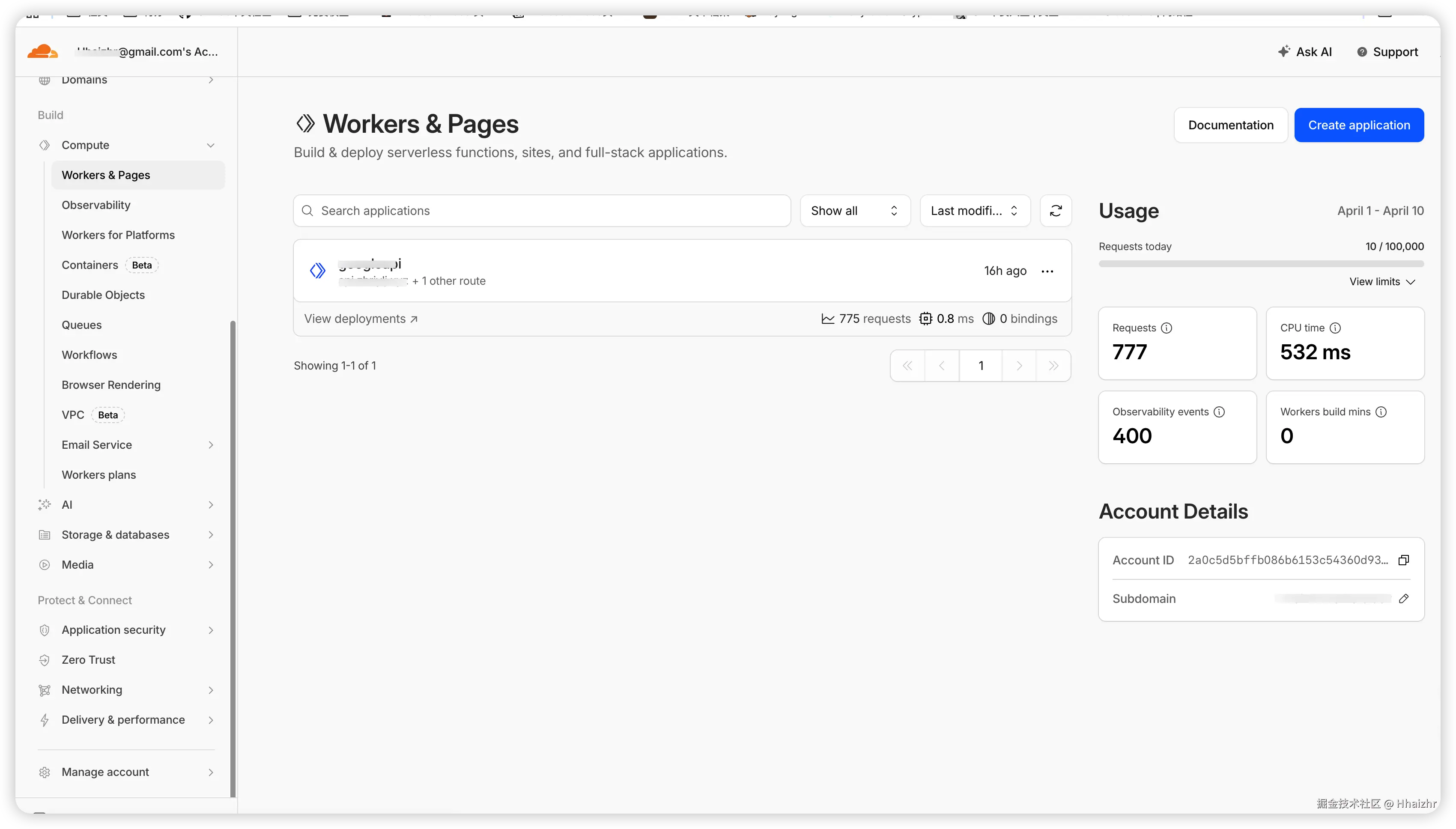 在左侧菜单找到 Workers & Pages ,点击 Create application,创建一个新的 Worker