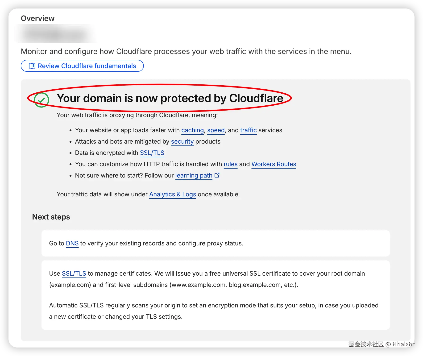 如果修改成功,你的域名状态会变成绿色的 "Active" (活跃) 。