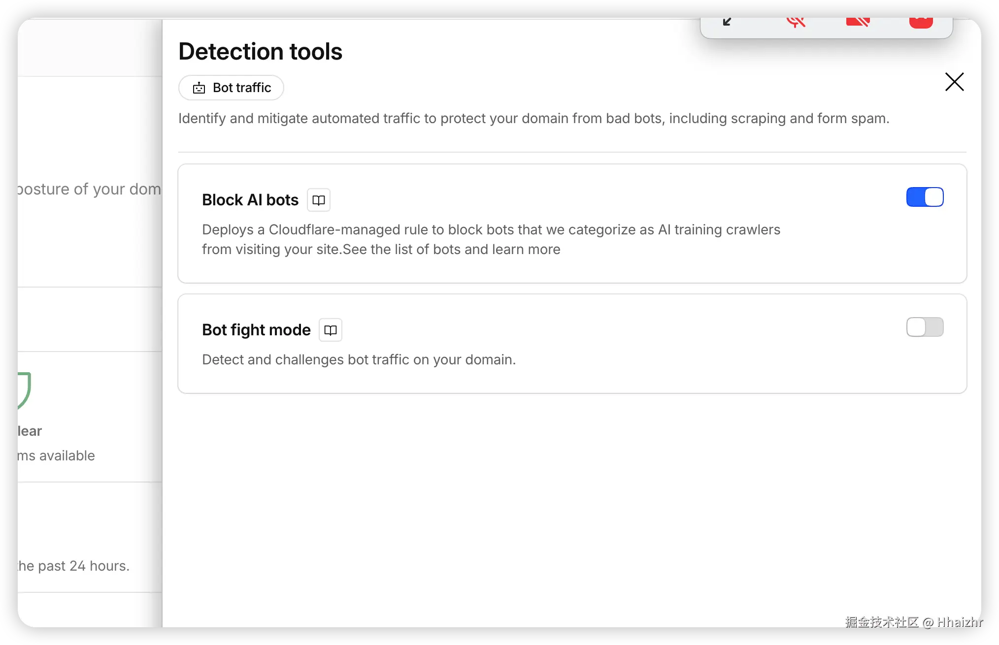 解决方案很简单 :在 Cloudflare 控制台对应域名的「安全性」(Security) 设置里,把 "Bot Fight Mode" (机器人攻击模式) 以及 Block AI bots (屏蔽 AI 机器人) 开关临时关掉,或配置通行白名单即可。