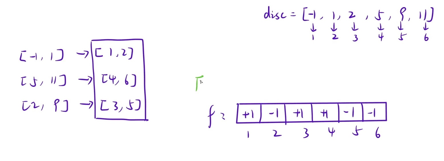千万不要在还原的差分数组里面求长度啊 比如此时的 1 对应的其实是-1记得拿离散化之前的数来相加!
