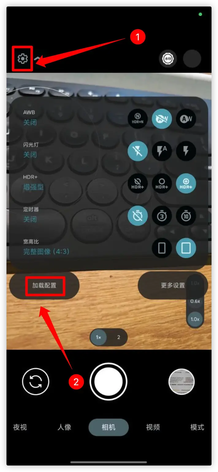 如果不加载配置,拍出来的照片可能很普通,甚至会黑屏闪退。