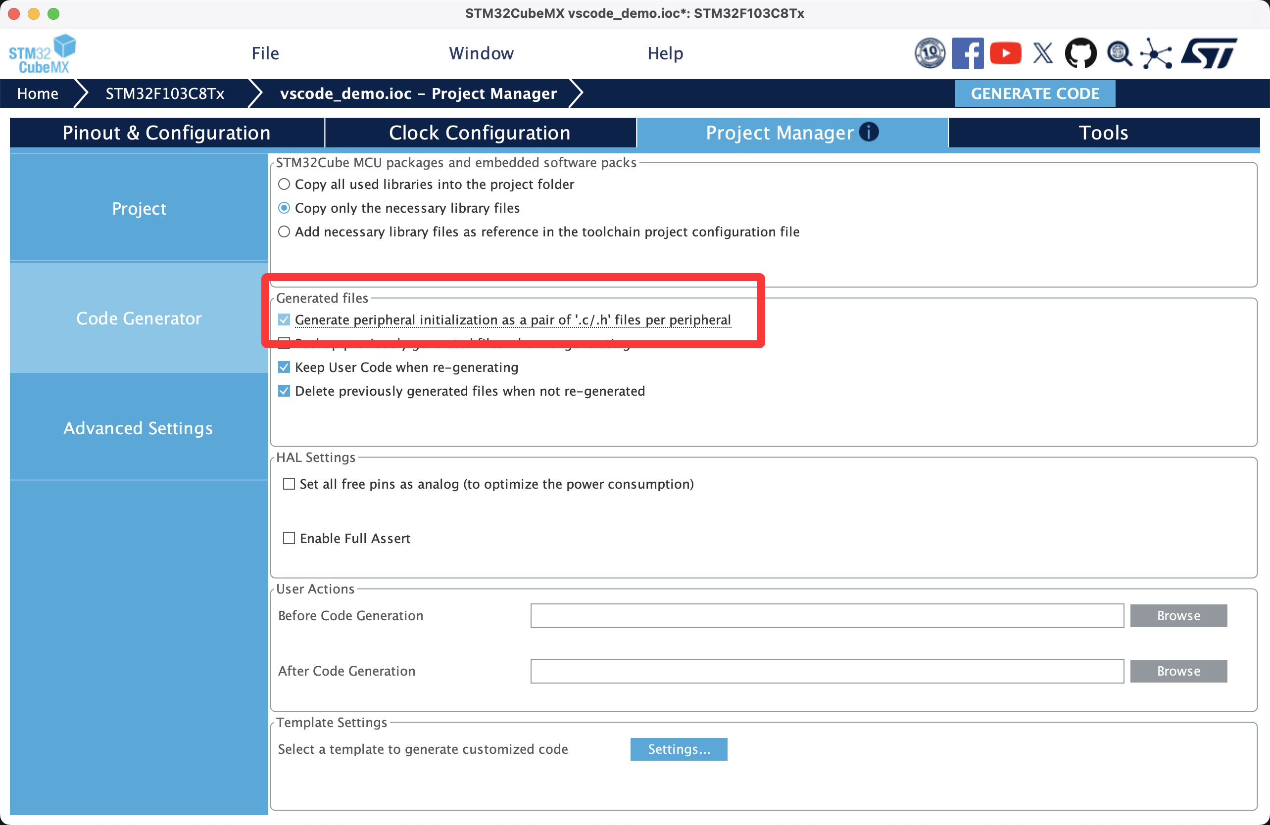 注意,代码要加在带有User Code xxxxx的注释里面,不然CubeMX重新生成会覆盖