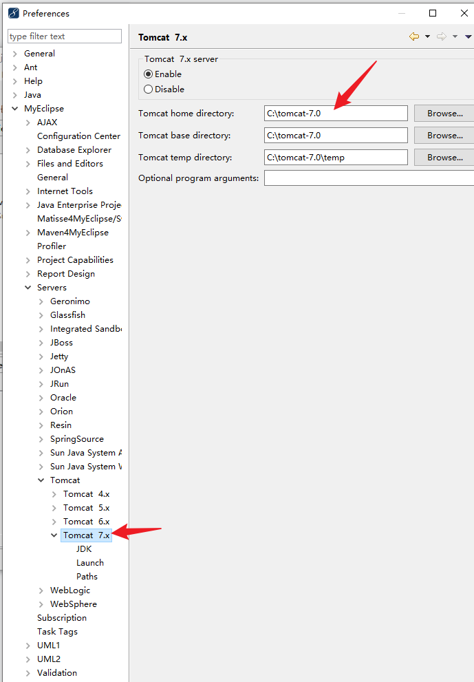 Myeclipse的tomcat部署设置: