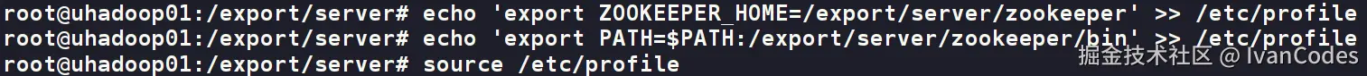 echo 'export ZOOKEEPER_HOME=/export/server/zookeeper' >> /etc/profile
