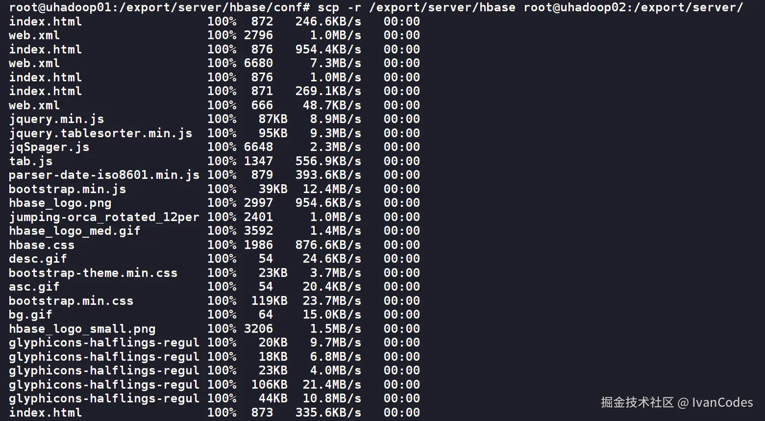 scp -r /export/server/hbase root@uhadoop02:/export/server/
