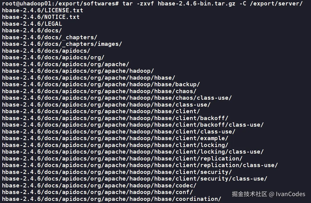 tar -zxvf hbase-2.4.6-bin.tar.gz -C /export/server