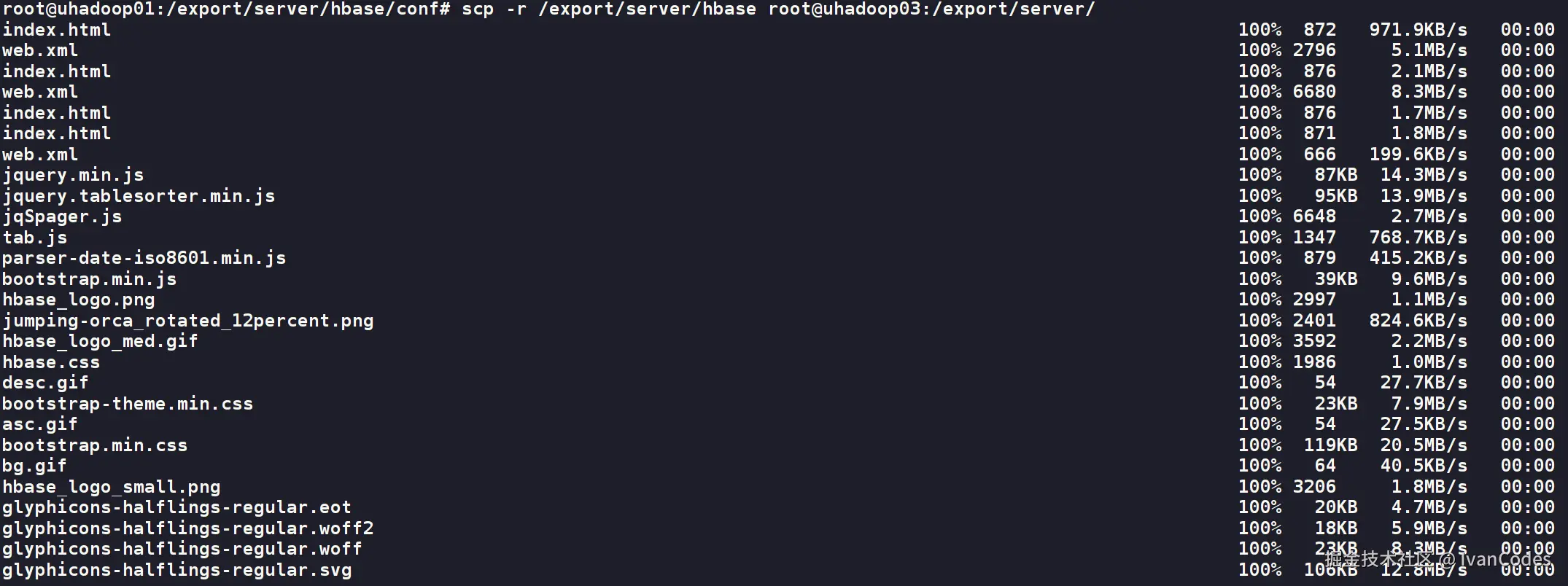 scp -r /export/server/hbase root@uhadoop03:/export/server/
