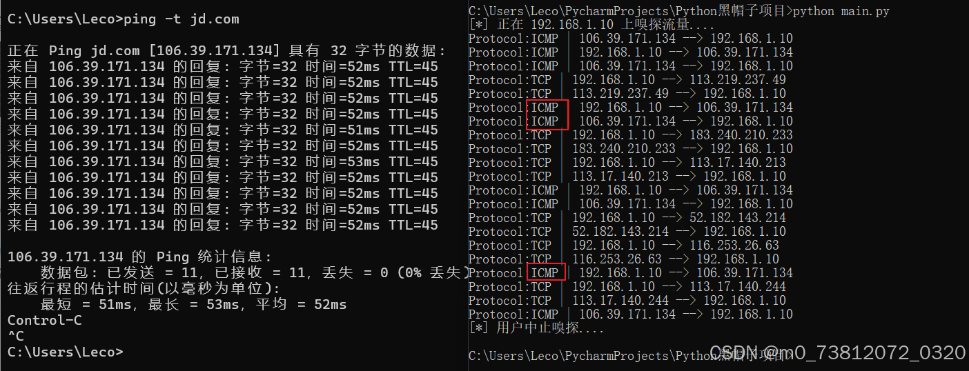 注意:运行此类涉及原始套接字和混杂模式的代码,通常需要管理员权限 (Win) 或 Root 权限 (Linux)。