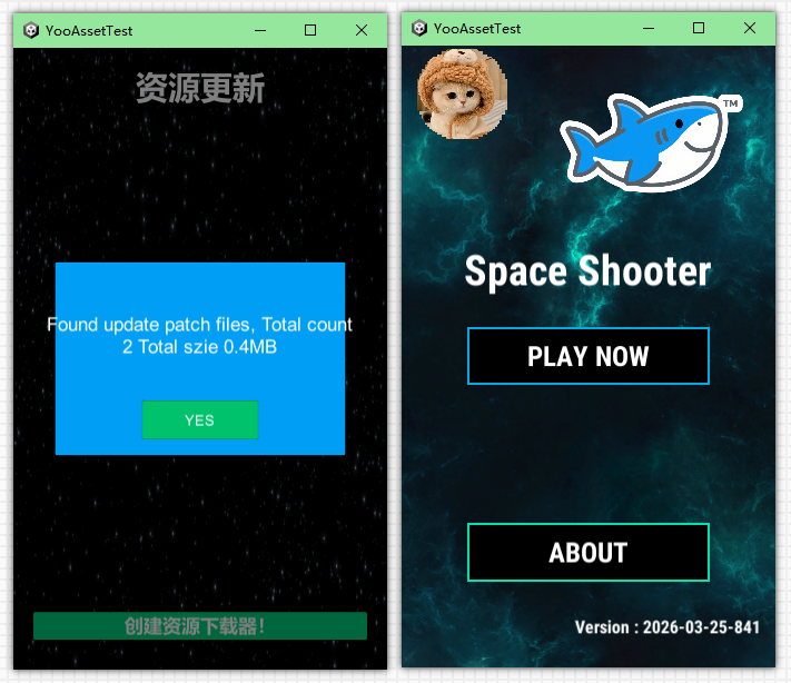 - Space Shooter 太空战机DEMO,包含完整资源热更流程演示。