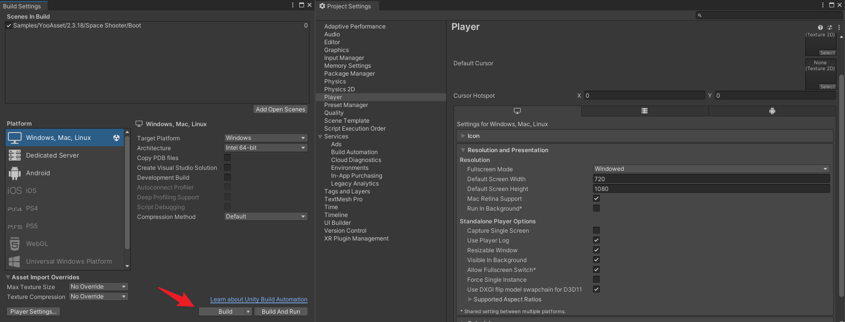 游戏可以正常运行了,开始Build一个PC包进行热更测试。