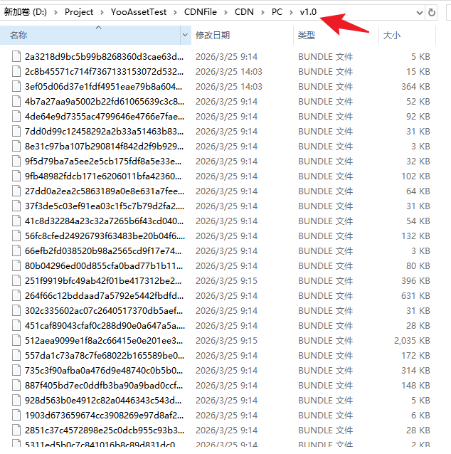 CDN目录下新建Android和PC文件夹,然后在PC目录下再新建一个v1.0文件夹用于放bundle文件。