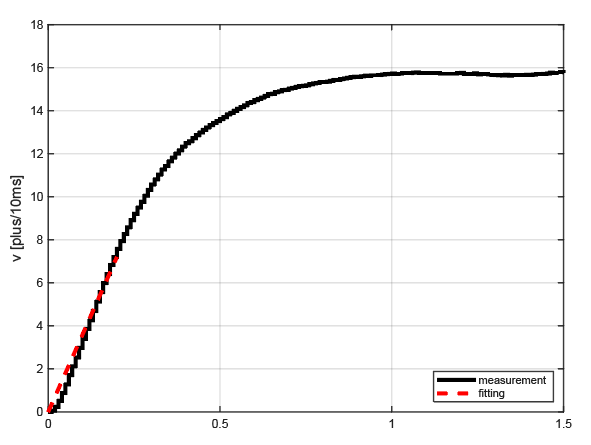 可以看出,在最初一段时间(200ms)内,施加恒定PWM信号下,速度可视为匀加速变化,故可视PvP_vPv为一纯比例积分环节。