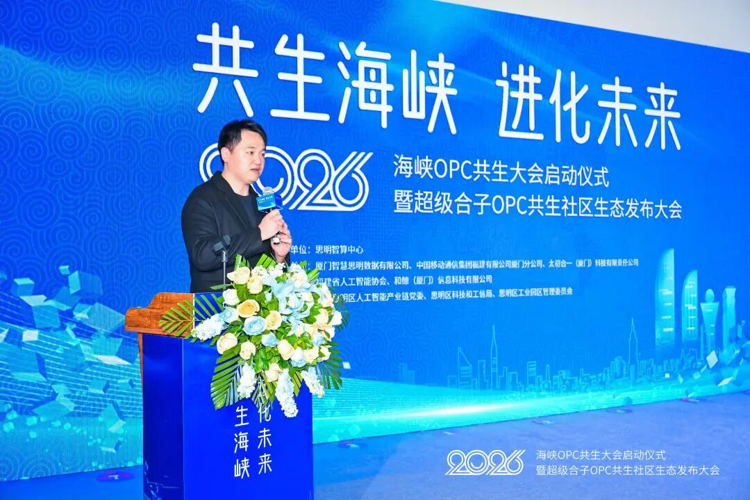 在各方指导见证下,"海峡OPC共生大会"正式启动。和鲸科技与在场嘉宾共同见证这一标志着思明构建人工智能"共生"新范式的关键一步。据悉,海峡OPC共生大会将于2026年3月底召开,以开放、协同、共生为发展理念,聚焦OPC模式下的技术创新与生态共建。