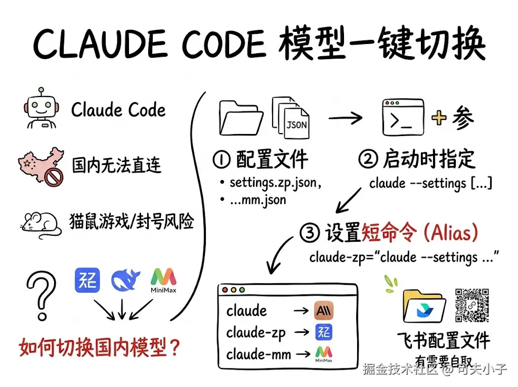我已把国内智谱、Minix、DeekSeek 还是自己本地的反代理的配置文件,都整理打包放到我的飞书里面,评论区留言:模板,我发给你:智谱/DeepSeek/MiniMax + 本地反代 4 份配置文件 + 常用 alias 集合(可直接复制)。