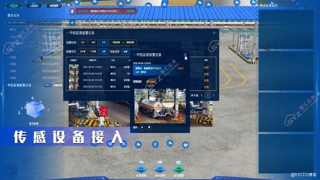针对槽车高频作业,依托智汇云舟研发的视频孪生数据承载底座的车牌识别与视频监控能力,建立"资质+审批+视频核验"三重机制,自动识别车辆资质并同步调取现场视频复核,拦截无资质或审批缺失车辆,从源头杜绝非法车辆进入危险区域。
