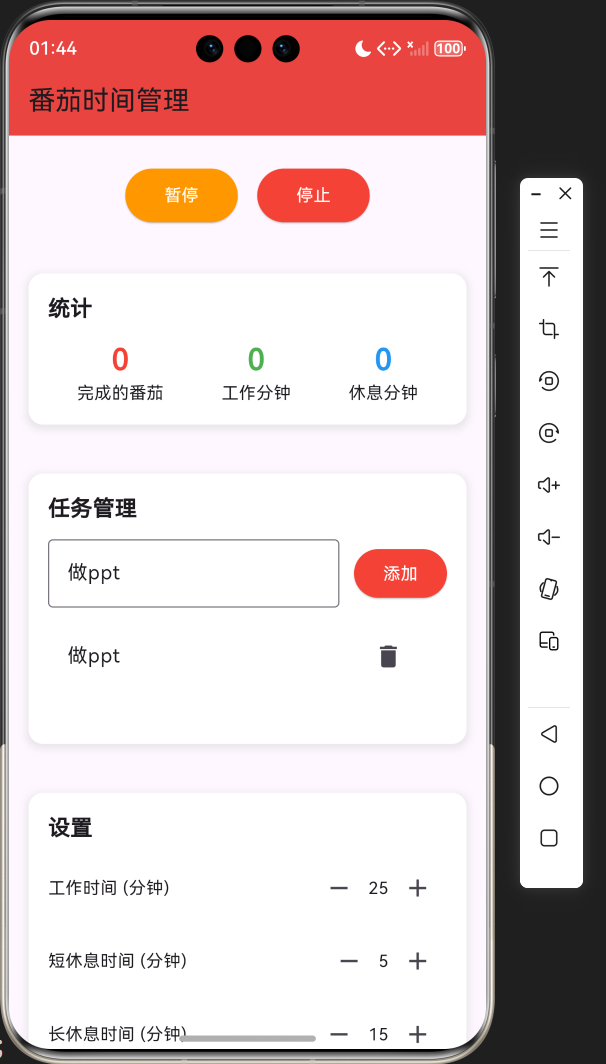 在快节奏的现代生活中,高效的时间管理变得越来越重要。番茄工作法(Pomodoro Technique)作为一种流行的时间管理方法,通过将工作时间分解为25分钟的工作段和5分钟的休息段,帮助人们提高专注力和工作效率。本文将详细介绍如何使用 Flutter 实现一个功能完整的番茄时间管理应用,包括倒计时功能、任务管理、统计分析和自定义设置。