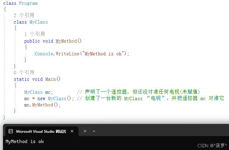 mc = new MyClass(); // 创建了一台新的 MyClass "电视",并把遥控器 mc 对准它