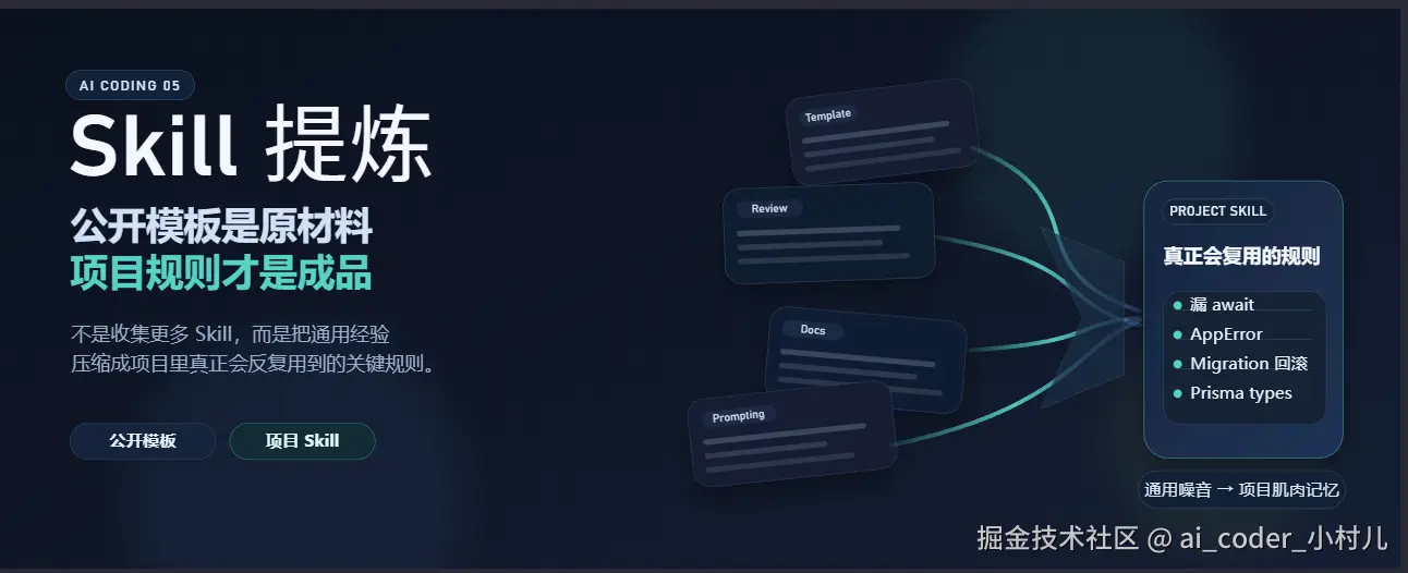 怎么把公开模板当原材料,而不是成品;怎么从自己的项目里,提炼出一个真正会被反复复用、而且越用越准的 Skill。