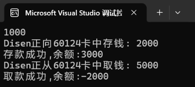 cout << name << "正向" << card.cid << "卡中存钱: " << v << endl;