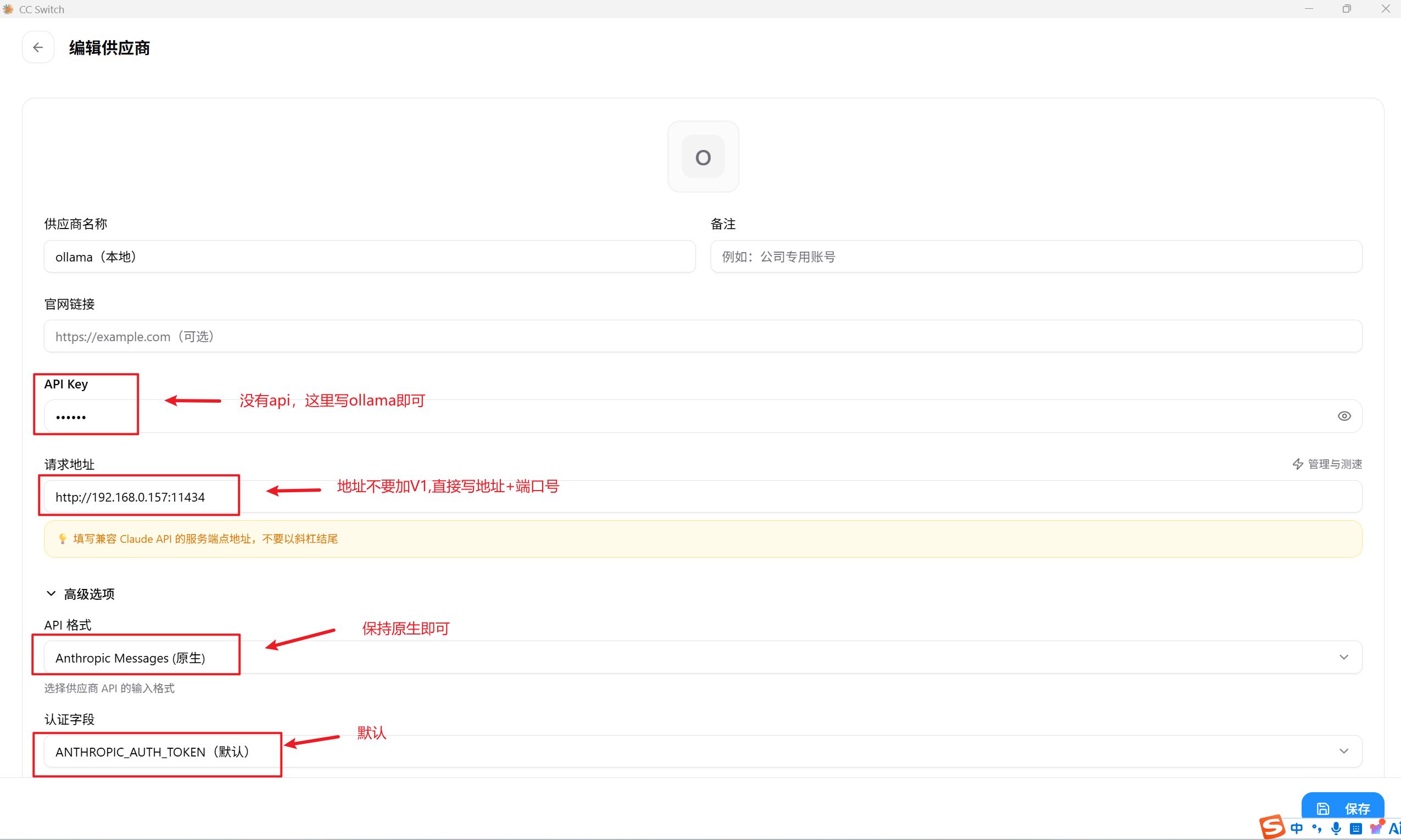 6、如果还是不行,那就用CC Switch连接ollama模型,然后用CC Switch来连接