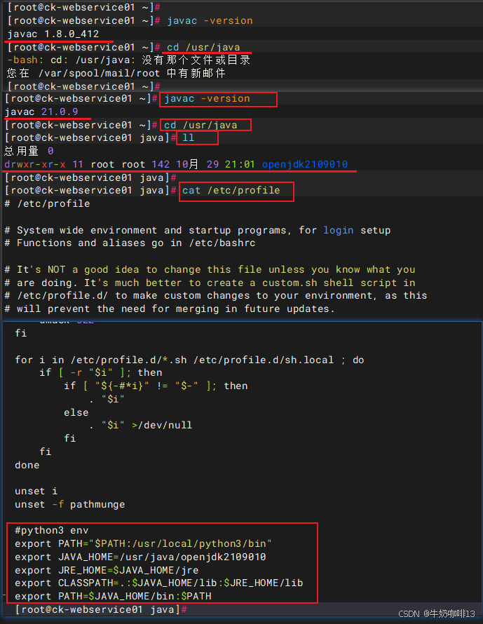 《1》在对整合后的jdk目录进行压缩的时候,一定要进入该jdk目录所在路径中执行压缩操作(如【tar -zcvf openjdk2109010.tar.gz openjdk2109010】)否则解压后会带有额外的路径导致配置的环境变量不对。