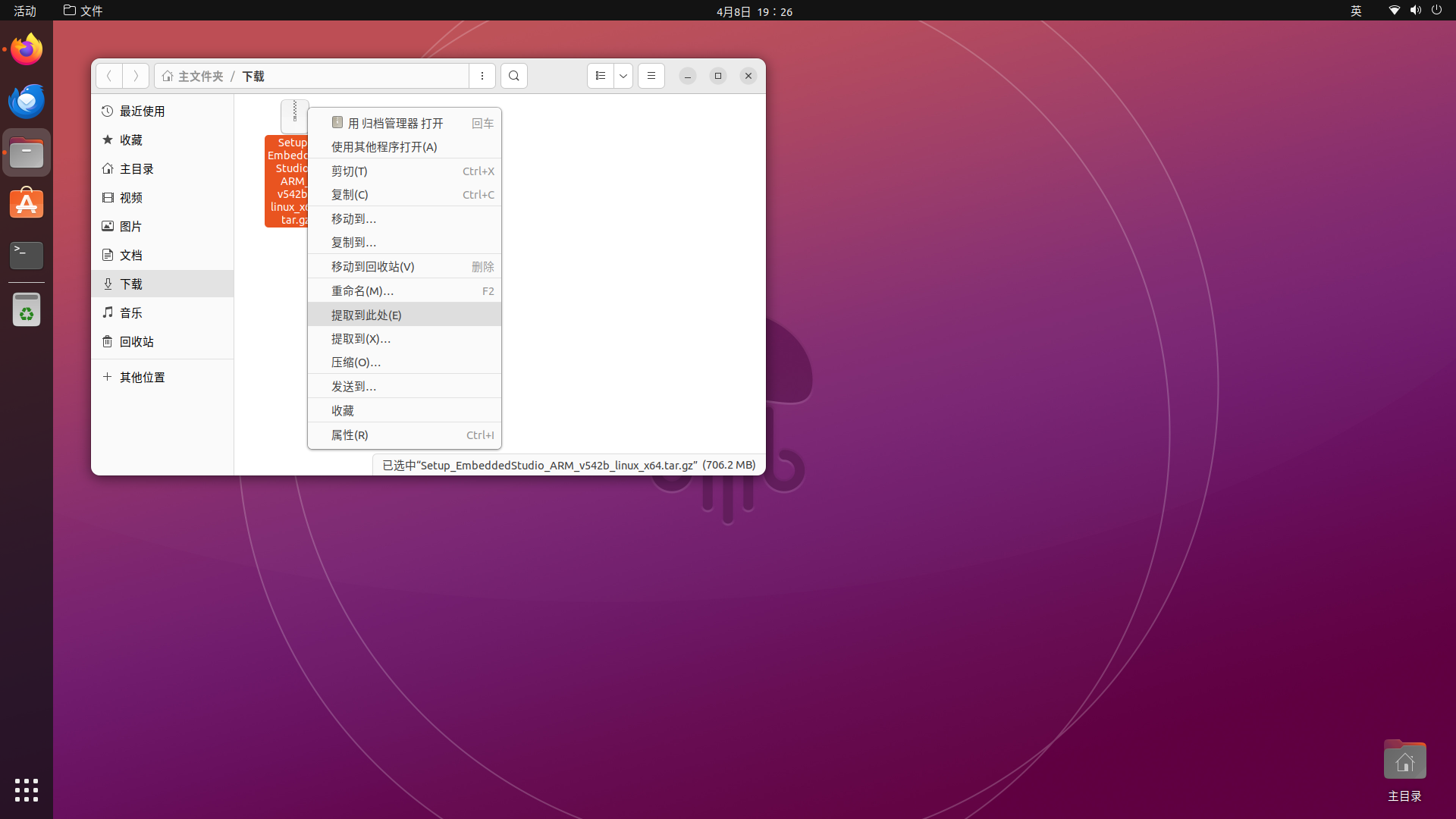 右键点击压缩包,选择"提取到此处":