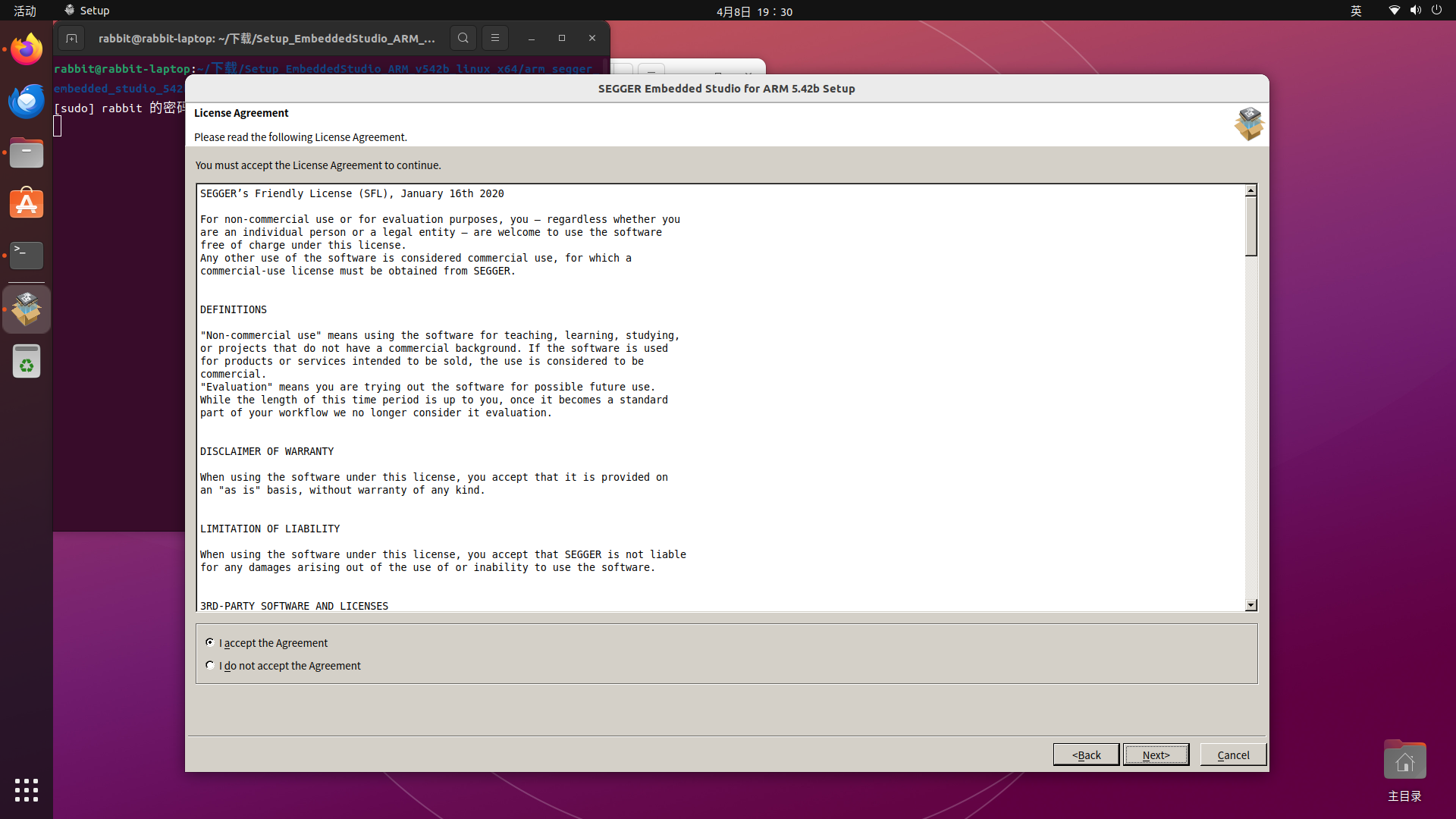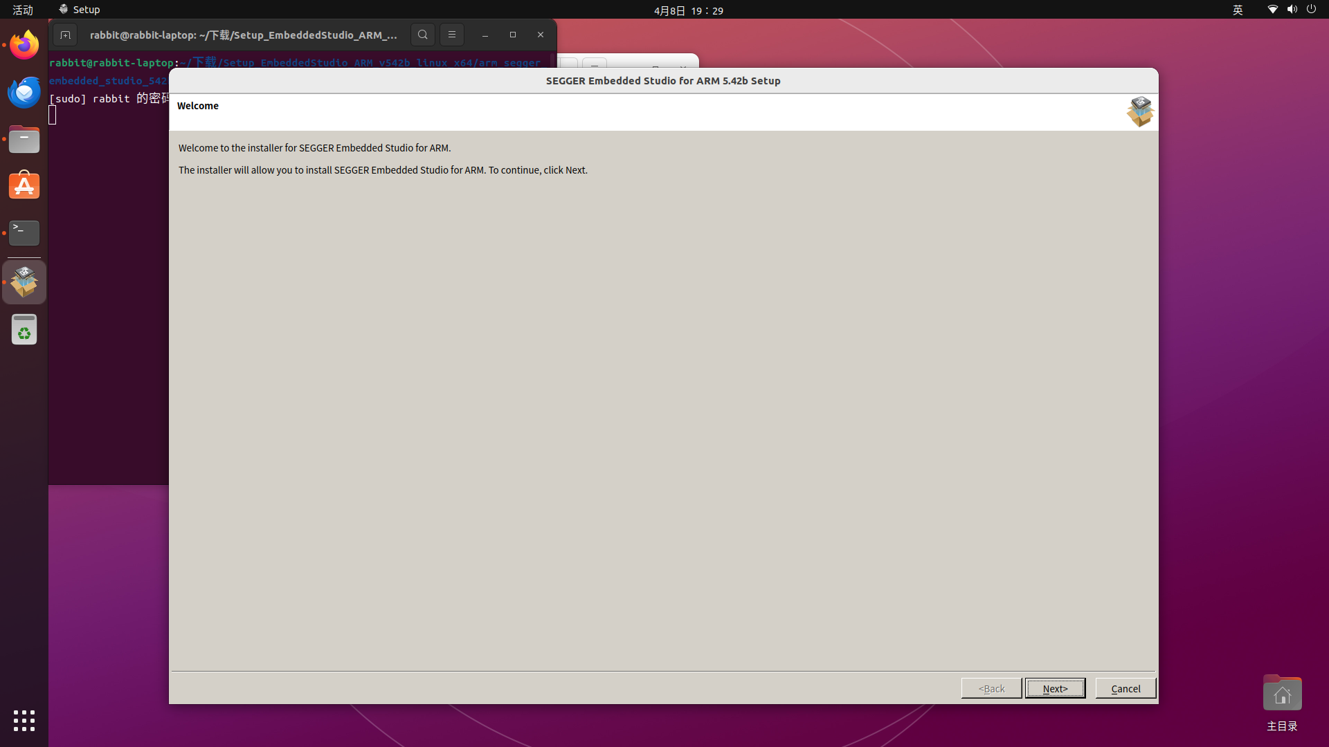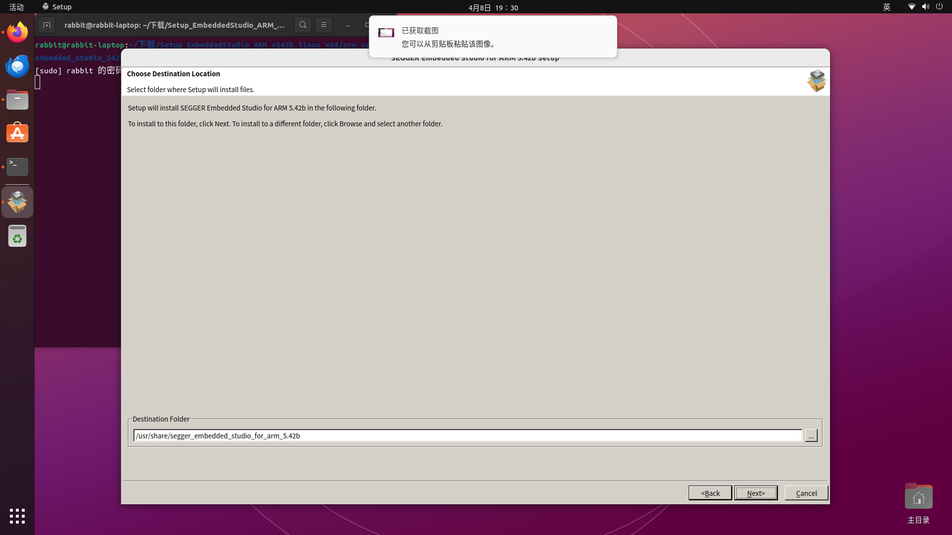 这里需要注意一下:与Android Studio不同,SEGGER Embedded Studio安装在了/usr/share目录下,是系统软件的公共资源(图标、文档、字体等)存放区,其资源会被不同软件共用,删除时需要注意不要影响其他软件;而/opt目录主要存放独立运行的软件,软件之间的资源互不共享,完全独立,删除压缩包就删除了软件。如无经验,不要轻易尝试更改,保持默认的目录安装,点击"Next"继续运行: