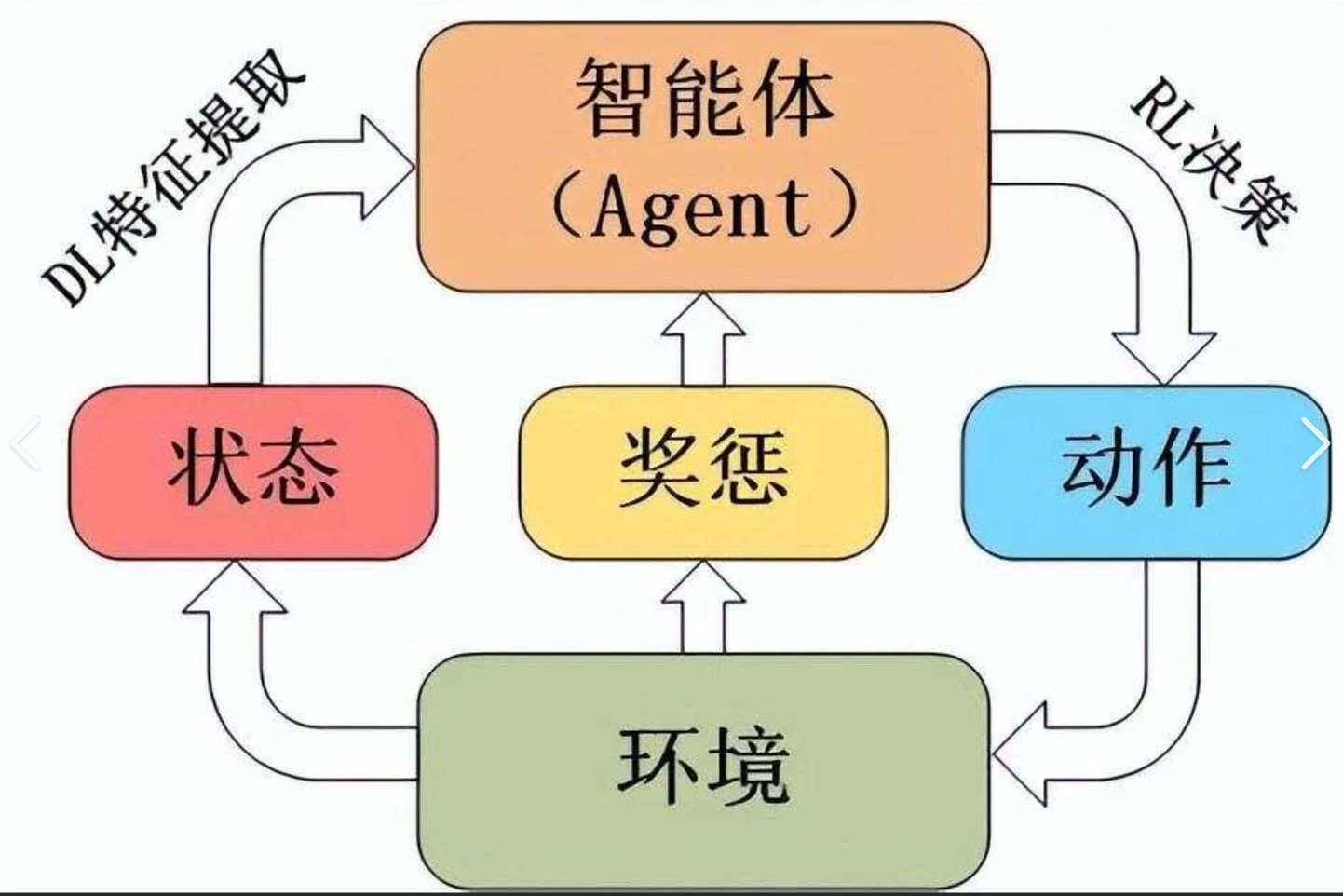 基本原理:通过构建四个要素:Agent,环境状态,行动,奖励,Agent根据环境状态进行行动获得更多的累积奖励