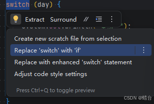 选中switch ,按 ALT+Enter 键,会出现如下图,选择 Replace switch with if