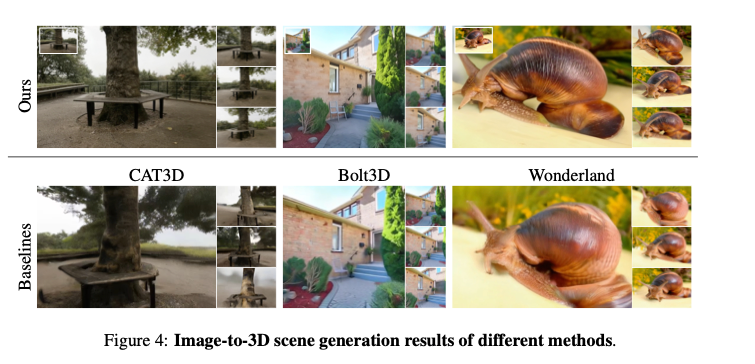 图4:不同方法的图像转三维场景生成结果