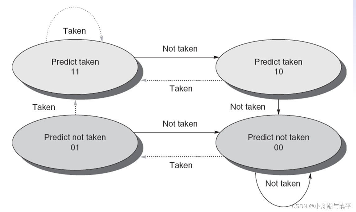 2)分支条件预测:分支条件预测由静态预测和动态预测组成。静态预测意味着分支要么总是执行,要么总是不执行。但现代CPU技术中,因为静态预测没有什么意义,比较过时,较少使用。动态预测最简单的是1位预测器,当状态为1时预测执行,反之预测不执行。如果预测不正确,则状态将翻转。为了进一步改进预测,可以使用2位预测器替换1位预测器。