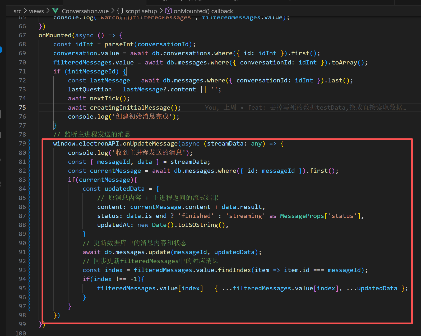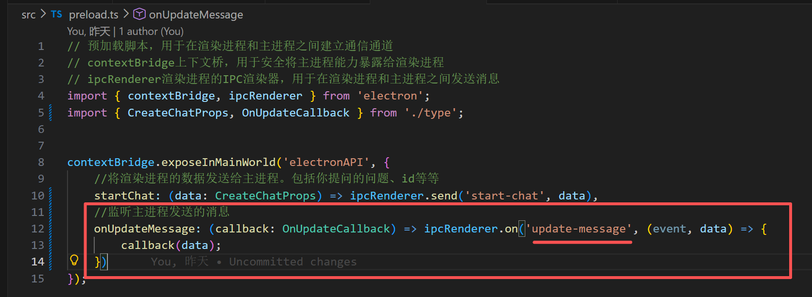 给IElectronAPI加一个方法叫onUpdateMessage