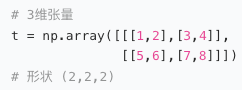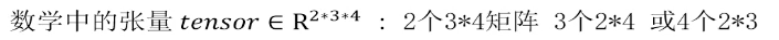 - 张量:≥3 维,多维数组(深度学习里所有数据都叫张量)