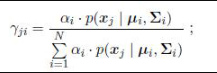 E步:根据当前模型参数计算未标记样本xj属于各高斯混合成分的概率 γji