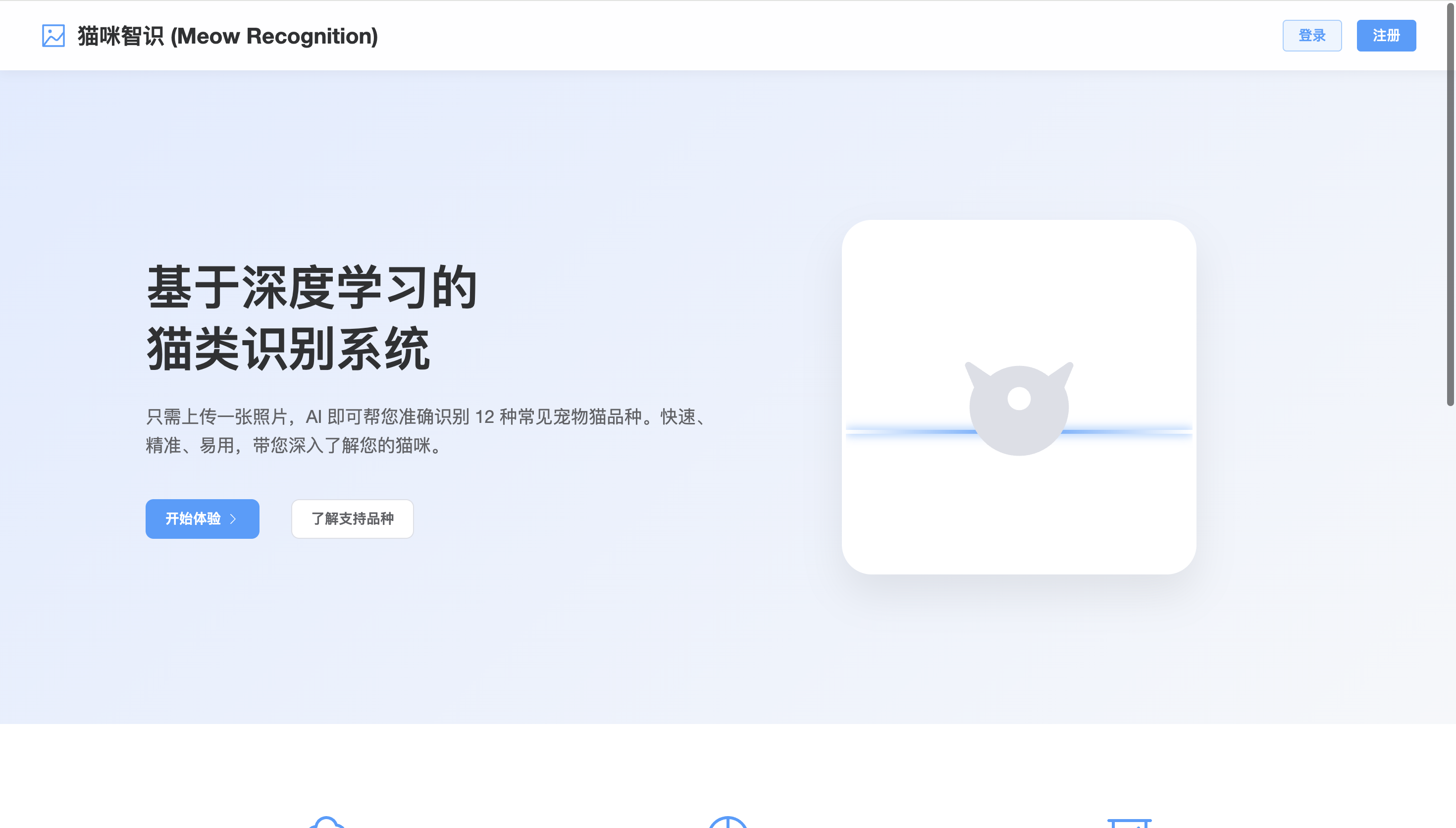 随着人工智能技术和计算机视觉方法的快速发展,图像识别已广泛应用于医疗检测、工业质检、智慧农业和智能安防等领域。在宠物经济持续增长的背景下,围绕宠物识别、健康管理与知识服务的智能化应用也逐渐受到关注。猫作为当前城市家庭中最常见的宠物之一,其品种种类较多,外观特征存在一定相似性,普通用户仅凭经验往往难以进行准确区分。因此,设计并实现一个基于深度学习的猫类识别系统,既具有较强的现实需求,也具备良好的研究与实践意义。