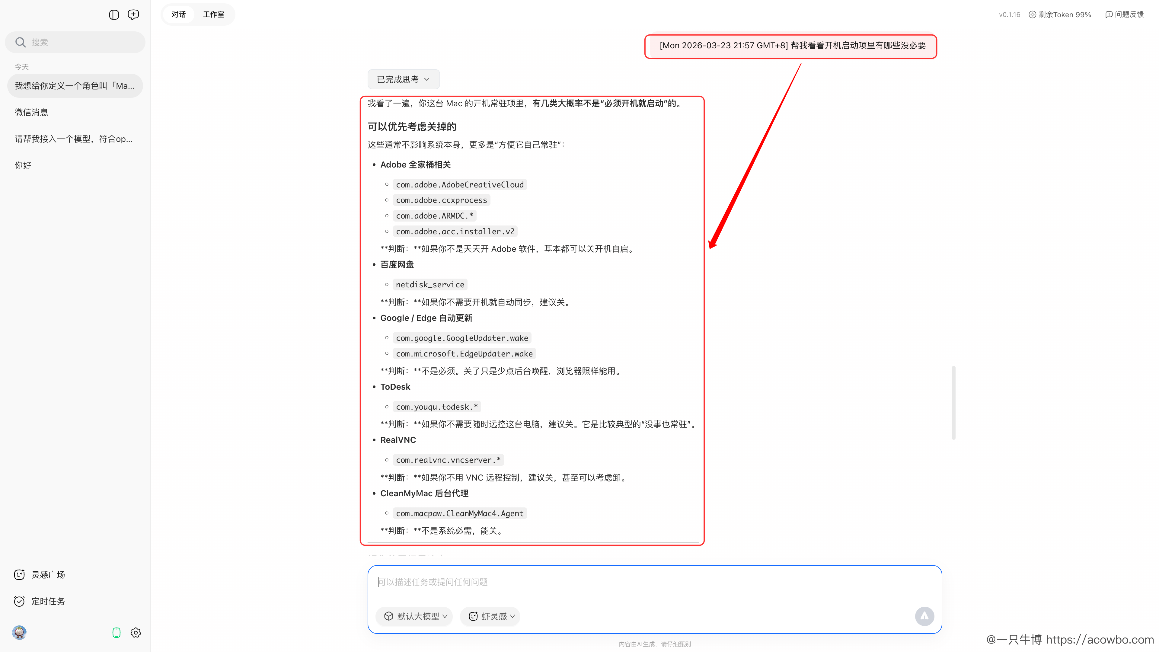 用了 QClaw 一段时间之后,我发现这些工具有不少可以卸掉了。不是因为 QClaw 有什么专门的系统管理功能,而是因为它能直接操控你的 Mac------查进程、读磁盘、看启动项、整理文件,用自然语言说一句,结果直接出来,还会告诉你该怎么处理。